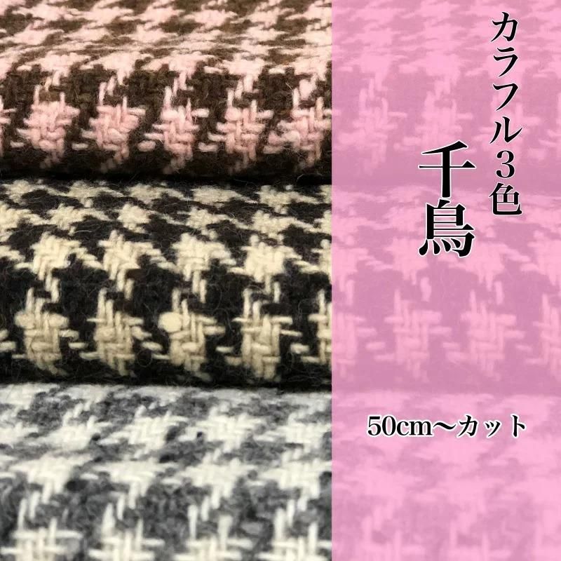 ブラウンベージュの千鳥はネップの糸を使用していない為、ピンクブラウンやライトグレーとホワイトの2柄とは違ってノーマル表情を楽しめます。