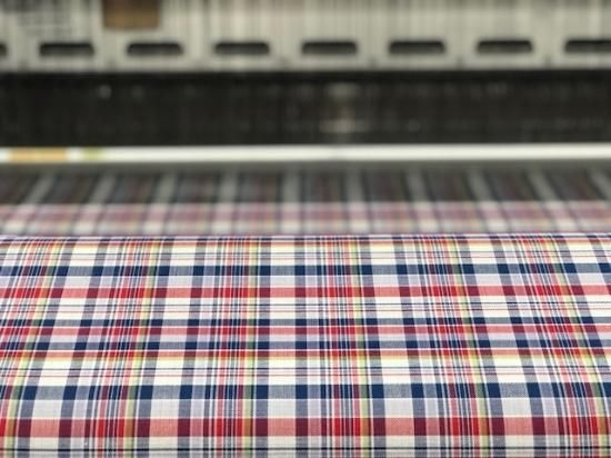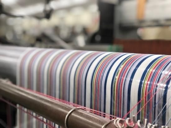 超長綿 ガス焼きの糸を色染めし、尾州のレピア織機にて