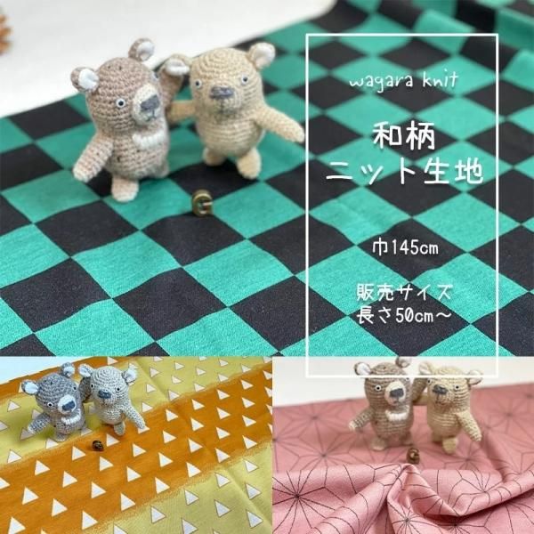 和柄市松グリーン 麻の葉模様 三角柄